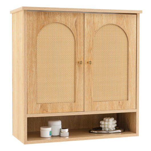 Bathroom Wall Cabinet with PE Rattan Doors and Adjustable Shelves-Natural – Color: Natural